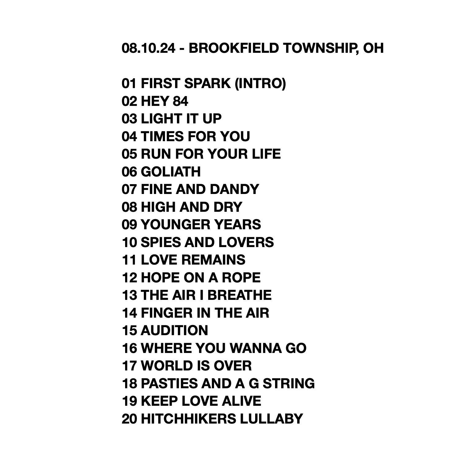 08/10/2024 – Brookfield Township, OH (Live Show Recording)